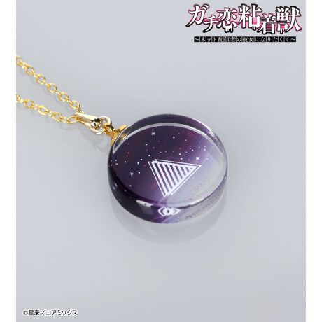 キャラクターの名前にもなっている星と宇宙をモチーフにしたデザインのガラスネックレスに仕上げました。