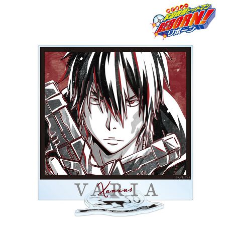 XANXUS(10年後)のイラストを新たなタッチで魅的に表現し、BIGなアクリルスタンドに仕上げました。台座にはファミリーロゴを使しています。