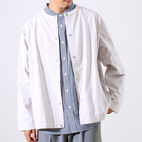 ボタンを開けて着流したり、袖をまくって裏地の色を見せたりと、着こなし次第で表情を変える1枚です。