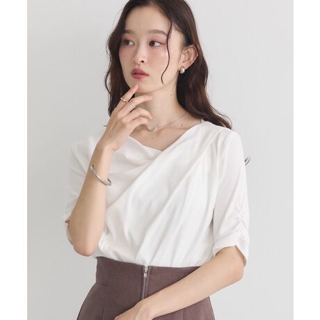 コットン100%で仕立てたナチュラルなデザインカットソー。ポイントタックでドレープを付けた立体感のあるシルエットがきれいめな一枚です。コンパクトな7分丈でシャーリングを加えたニュアンスある袖もさりげないポイント。シンプルながらもこなれたスタイリングに魅せてくれる着回し力の高いアイテムです。透け感[ややあり]