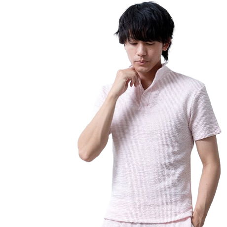 商品名:ポロシャツ メンズ 半袖 シアサッカー 七分袖 ポロ シャツ ストレッチ 半袖シャツ
