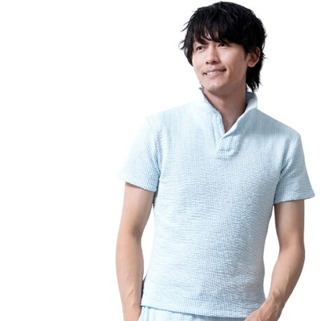 商品名:ポロシャツ メンズ 半袖 シアサッカー 七分袖 ポロ シャツ ストレッチ 半袖シャツ
