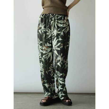 スタイリングを華やかに彩るボタニカル柄のイージーワイドパンツ。
