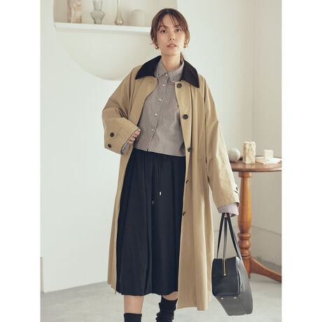 <b>【撥水】【コーデュロイの襟がつけ外しできる、ステンカラーコート。Aラインシルエットで、ロングスパンで活躍する一枚】</b>