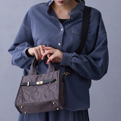 キルティング素材がかっちりしたデザインに抜け感をだしてれるので、きれいめのお洋服にも、カジュアルにも合わせやすくおすすめです。