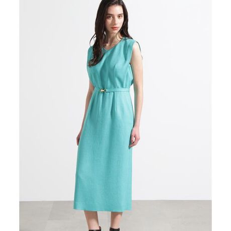 ウエストは共地のベルトが付いて華やかさのあるゴールドメタルバックルが女性らしさを演出したスタイルアップ見えも叶えるワンピースです。