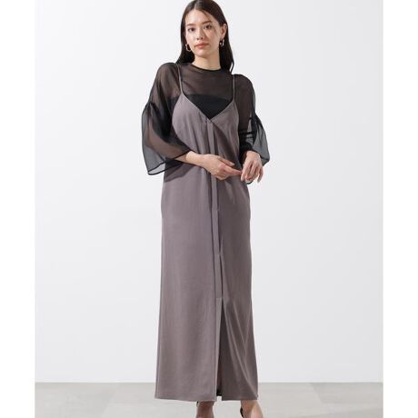 すっきりとしたIラインシルエットと深めのVネックが、エレガントな雰囲気を演出するキャミワンピース。