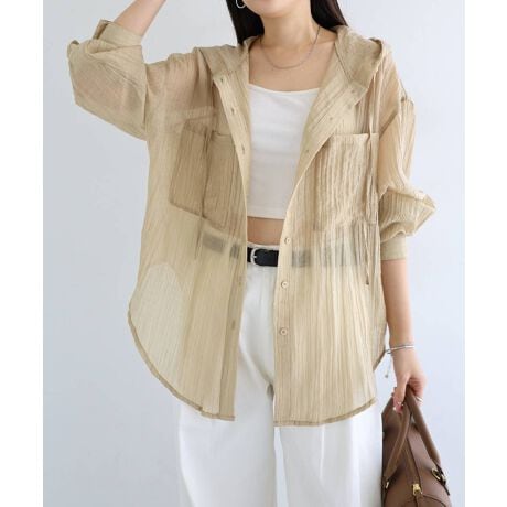 オーバーサイズ 長袖 フーディ シアー シャツ ブラウス