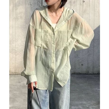 オーバーサイズ 長袖 フーディ シアー シャツ ブラウス