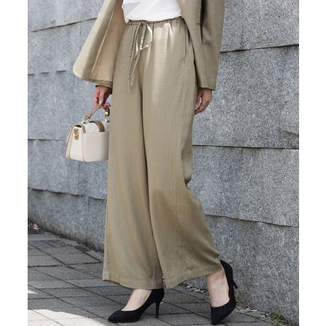 ウエスト全体にゴムが入った腰回りも楽ちんな仕様です。ウエストに通った共地紐がよりリラクシーな雰囲気を演出します。