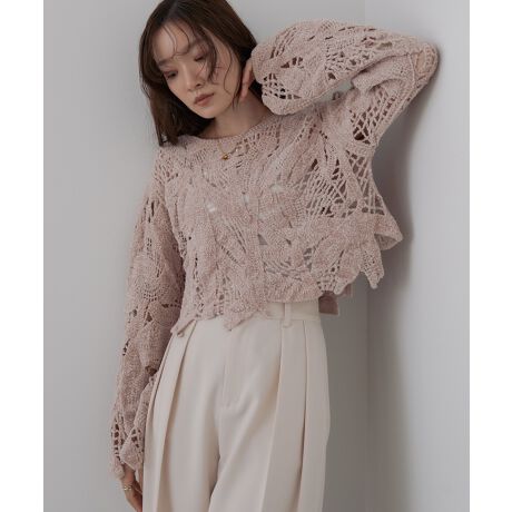 大人気のクロシェシリーズが冬仕様になって登場です!幾何学的にモールヤーンで編まれた繊細な編み目部分は、柔らかくチクチク感を感じない生地感に仕上がりました。袖部分も手首にかけて広がるようなデザインは上品な印象を与えます。モールヤーンの生地を使用しているのでベロアなどのキャミワンピースの上から着るだけで秋はお過ごしいただけるくらい暖かいです。