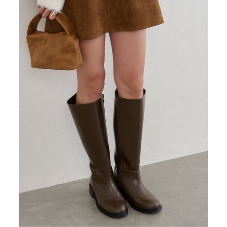 シンプルなロングブーツは一つ持っているとスタイリングに重宝するアイテム。
