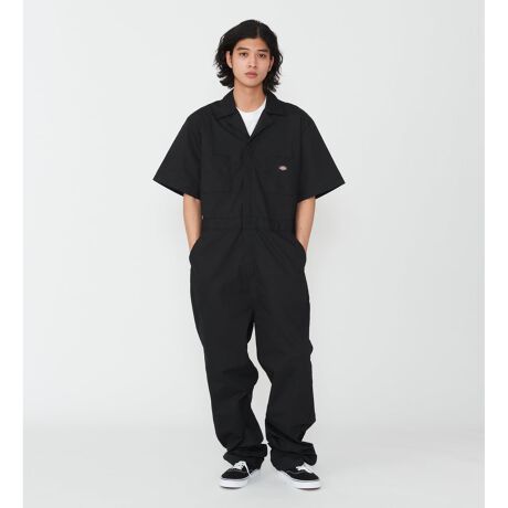 [型番:D11765-0001]Dickiesの定番カバーオール「33999」を、半袖仕様で仕上げたワークジャケット。ポリエステル×コットンの混紡素材を使用し、軽さと耐久性を兼ね備えています。シンプルなデザインで着回しやすく、羽織るだけでワークスタイルが完成。Tシャツの上からさっと着られ、夏場にも取り入れやすい一着です。