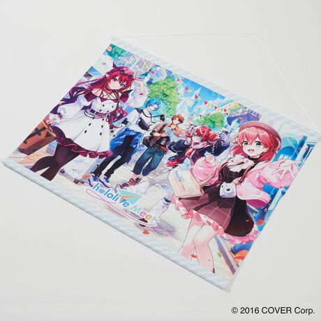 旅中にある5人のアンバサダーから送られてきた記念写真のようなhololive Meetの描き下ろしイラストが、B2サイズのタペストリーに!