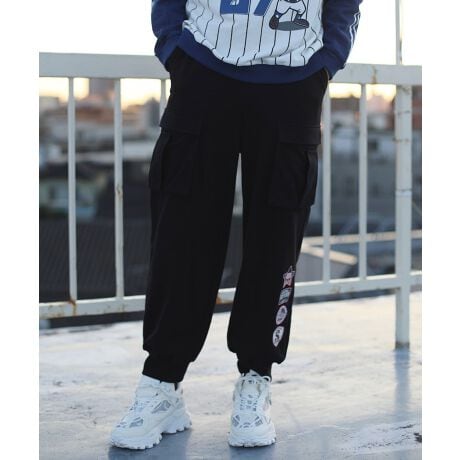 HOOK -original- アメカジワッペンプリントビッグポケットカーゴパンツ