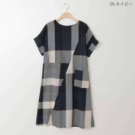 配色ラインを加えたコントラストのあるチェック柄が印象的なワンピース。