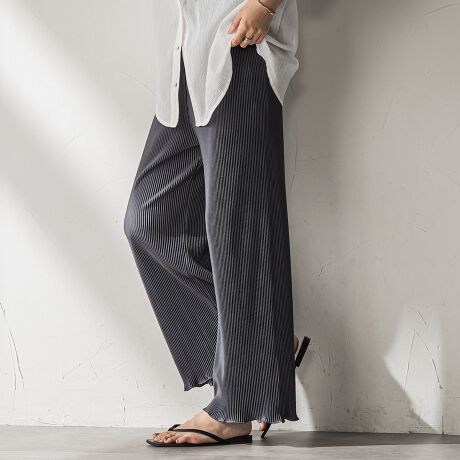 ラフでありながら、細かなプリーツ加工とストレートシルエットが脚をキレイに魅せます。