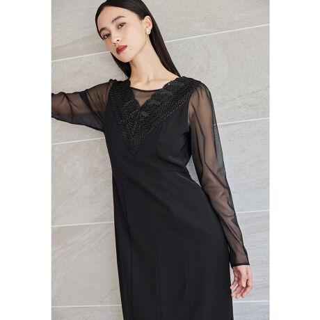 胸元とお袖部分はチュールの透け感で程よい肌見せをプラス。