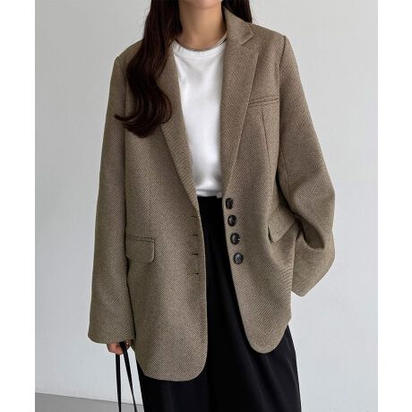 callautia ボタンデザインヘリンボーンテーラードジャケット