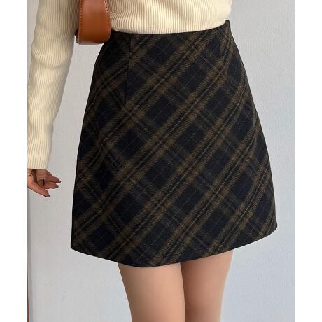callautia ウールライクバイアスチェック柄ミニスカート(インパン付)