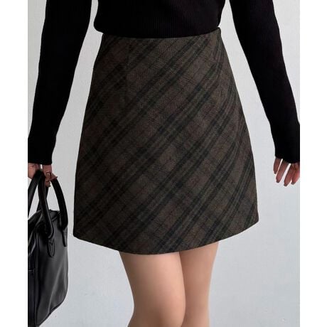 callautia ウールライクバイアスチェック柄ミニスカート(インパン付)