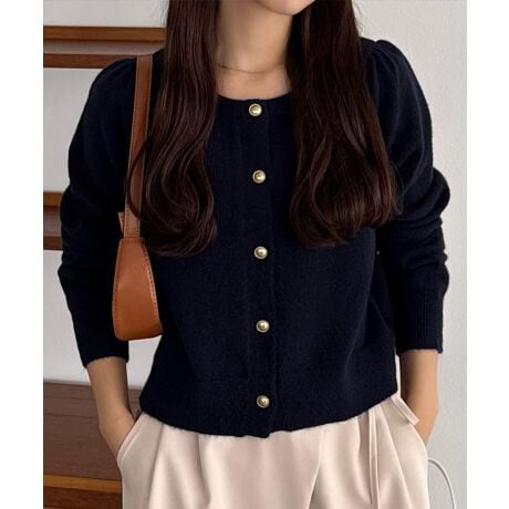 金ボタンパフスリーブショートニットカーディガン