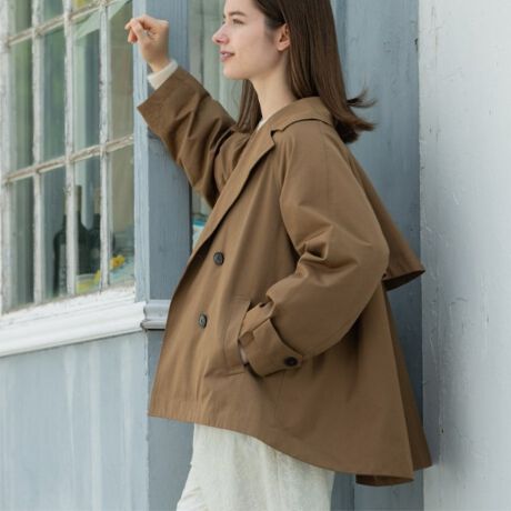 ・ゆったりとした身幅が魅力のミドル丈トレンチコート。