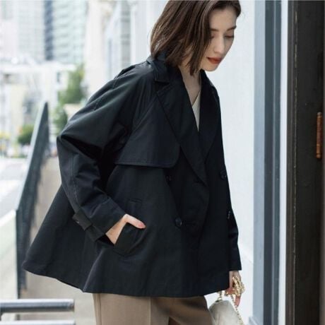 ・ゆったりとした身幅が魅力のミドル丈トレンチコート。