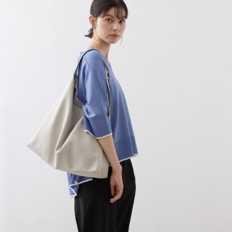 独特の三角形フォルムが個性的な印象を与え、オンにもオフにも対応できるバッグとして活躍します。
