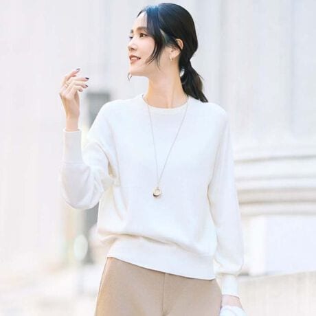 薄手で柔らかな肌触りとシンプルなコクーンシルエットのデザインで、スカートと好相性のプルオーバー。