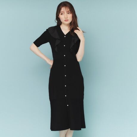 シアーなフリルドッキングが可愛らしく華やかなニットワンピース
