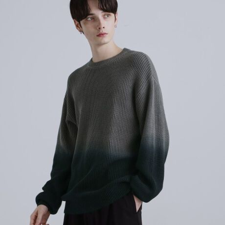 裾にかけて濃さが変化する段染めが印象的なグラデーションニット。
