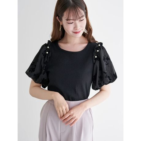 ・ふわっとしたバルーンスリーブが、二の腕をカバーしつつコーディネートのポイントに。