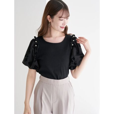 ・ふわっとしたバルーンスリーブが、二の腕をカバーしつつコーディネートのポイントに。