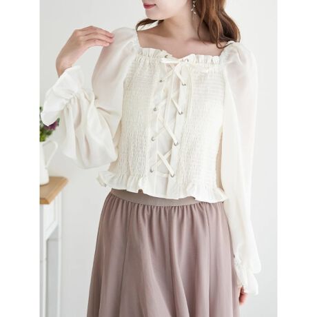 レースアップデザインがフェミニンな甘さをプラスしてくれるトップス