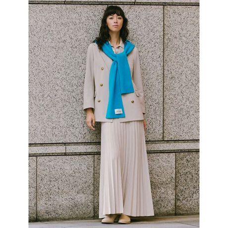 肩掛けするいわゆる“ディレクター巻き”だけでなく、普通のマフラー風に巻いても使える、ウィットに富んだアクセサリーです。