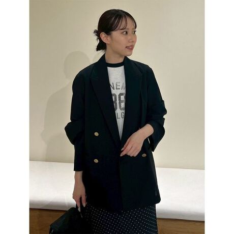 ダブルのブレザータイプなので、きちんとした印象にも使えて、オンでもオフでもスタイリングできる便利な一枚です。太めの袖になっているので、シャツのようにロールアップできるデザイン。軽く羽織って腕をまくれば、こなれた印象のスタイルがすぐに楽しめます。
