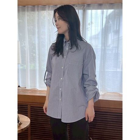 程よいオーバーサイズで、羽織りものにも使いやすい形。また、ニットなどのインにもレイヤードできます。