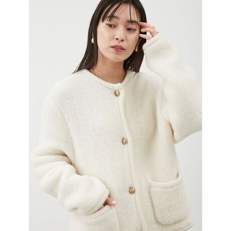 <b>【大人気のノーカラーカーデ、今季はボア風のニット素材にアップデート。もこもこ感で愛せる一枚に】</b>