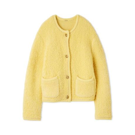<b>【大人気のノーカラーカーデ、今季はボア風のニット素材にアップデート。もこもこ感で愛せる一枚に】</b>
