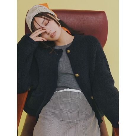 <b>【大人気のノーカラーカーデ、今季はボア風のニット素材にアップデート。もこもこ感で愛せる一枚に】</b>