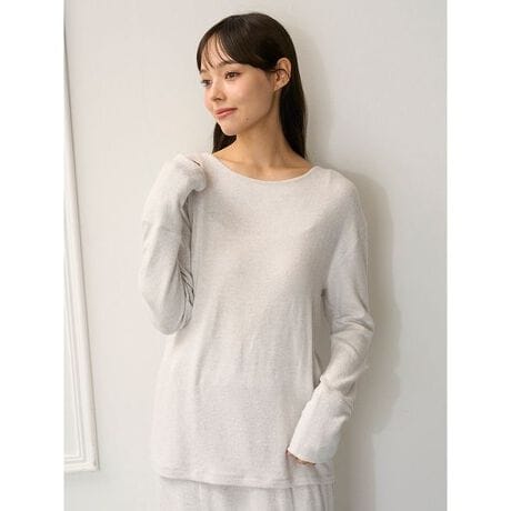 世代を問わず大好評のふんわりと軽い素材‘スノー’を使用したシリーズです。ネックラインをゆったりと開けた長袖のプルオーバーは、袖口に切り替えを入れたさりげないデザイン性がポイント。‘スノー’ならではの柔らかな肌触りを大切にした、大人っぽいシンプルな1枚に仕上げました。同シリーズのロングパンツやスカートとのコーディネートもお楽しみいただけます。