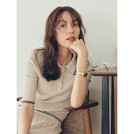 人気が続くクラシカルなポロ襟のニットを、モダンに進化させた、サマ見えする一枚。