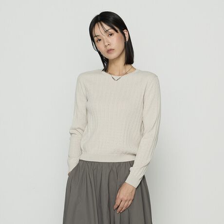 襟元が詰まったクルーネックはスタンダードな一枚として合わせやすいプルオーバーです。