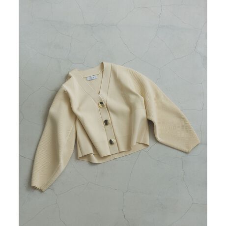 スッキリとした身頃の編み地とシルエット、袖の形状にもこだわり、ジャケット見えする綺麗目にも着用可能なカーディガン。