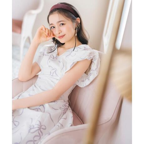 動くたびに美しく。リボンが描く、洗練のAラインシルエットワンピース【Design】・リボンの日にぴったりな、特別感あふれるオリジナルリボン柄のバブルスリーブワンピース。・ボリューム感のあるバブルスリーブが顔まわりを華やかに彩り、視線を引き寄せるデザイン♪・ウエストにはタックを施し、きゅっと引き締まった美しいシルエットを演出。・裾に向かって広がる上品なAラインが、動くたびにふんわり揺れて女性らしさを引き立てます。・Vネックの抜け感が首元をすっきりと見せ、大人の洗練された印象に!・ウエスト切り替えを高めに設定しているため、自然とスタイルアップ&脚長効果も。・同柄の「リボンプリントフレアスカート(品番:20082522100010)」もおすすめです♪・背中ファスナー仕様。・後ろはゴム&レースアップ仕様なのでサイズの調整が可能です。【Fabric】・さらりとした肌触り&軽い着心地の仕上がり。・裏地付き。・ご自宅でお手入れが出来るのも嬉しいポイント♪・ホワイト、ピンク、ブラックの3色展開となります。【Care】手洗い可能