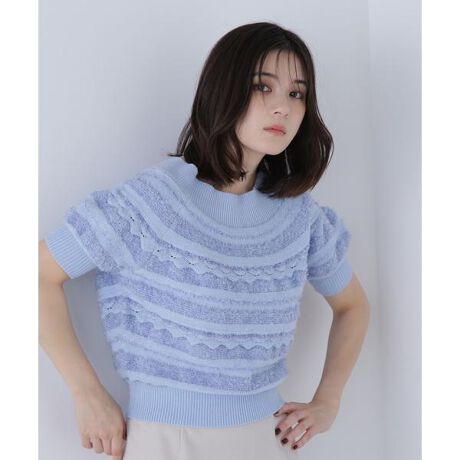 3種類の素材を使用した表情が愛らしいニット。細かい柄編みが今年らしい雰囲気を引き立てるデザインです。襟はテンションのあるリブ編みなので、ボートネックでもオフショルでも着ていただけます。キレイめパンツとのコーディネートもおすすめ。暖かみのある糸を使っているため冬本番を迎えるまで活躍できます。<素材>フラッグヤーンとラメ糸を使用し、プレーンな糸でまとめた柄編みニットです。<詳細>仕様・開閉なし裏地・なし透け感・なし / 光沢・なし / 伸縮性・あり生地の厚さ・普通※モデルの着用画像の場合、光の当たり具合により、実際の色味と異なって見えることがございます。色味は、商品単体の画像をご参照ください。