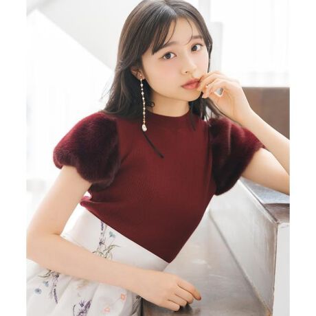 リボンの日にぴったりの特別感あふれる袖ファーのプルオーバーが登場♪【Design】・ふわふわのフェイクファーがあしらわれた袖は、見るだけで心ときめく愛されデザイン!・まだ暑さの残る季節にも心地よく着られる半袖仕様で、秋の気分をさりげなく先取りできちゃいます♪・ボリュームのあるスリーブが腕まわりを華奢に見せて、女性らしいシルエットを演出。・やわらかなリブ素材で程よく身体にフィットし、着心地も見た目も抜群の一枚です。・ハイウエストボトムにウエストインすれば、上品でバランスの良い大人フェミニンコーデが完成します。・デートやお出かけ、女子会にもぴったりな、大人可愛い秋トップスです。【Fabric】・袖部分はフェイクファーを使用。・ボディ部分は伸縮性のあるリブ仕立てとなっています。・ホワイト、ベージュ、ピンク、ボルドー、ラベンダー、ダークブラウン、ライトグレー、ブラックの8色展開となります。【Care】ドライクリーニング