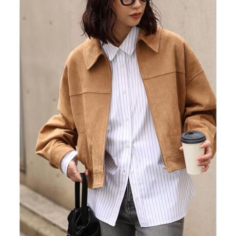 昨年ご好評いただいたアイテムが、素材をアップグレードし新色を加えて登場!リアルレザーに近い素材を厳選し、フェイクレザーとフェイクスウェードの質とシボ感に拘ったブルゾンです。裾の後ろはゴムギャザーとタックを入れ、着用すると後ろに抜ける立体的なフォルムが特徴です。程よいショート丈なのでパンツもスカートも◎。アームホールも大きめなので、スウェットや厚手のニットの上からでも着用いただけます。幅広いテイストのスタイリングに便利で、カジュアルからモードシック、Y2Kまでコーディネートに取り入れやすくておすすめです。※モデルの着用画像の場合、光の当たり具合により、実際の色味と異なって見えることがございます。色味は、商品単体の画像をご参照ください。