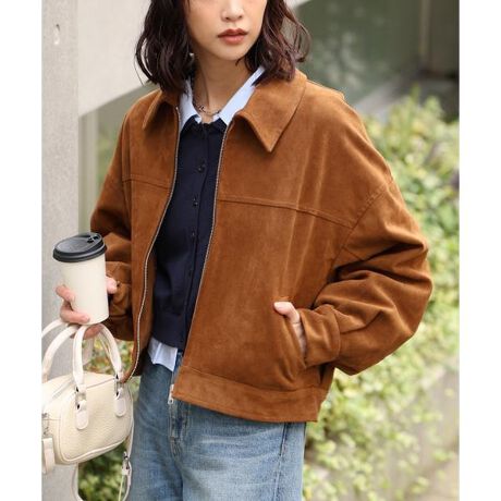 昨年ご好評いただいたアイテムが、素材をアップグレードし新色を加えて登場!リアルレザーに近い素材を厳選し、フェイクレザーとフェイクスウェードの質とシボ感に拘ったブルゾンです。裾の後ろはゴムギャザーとタックを入れ、着用すると後ろに抜ける立体的なフォルムが特徴です。程よいショート丈なのでパンツもスカートも◎。アームホールも大きめなので、スウェットや厚手のニットの上からでも着用いただけます。幅広いテイストのスタイリングに便利で、カジュアルからモードシック、Y2Kまでコーディネートに取り入れやすくておすすめです。※モデルの着用画像の場合、光の当たり具合により、実際の色味と異なって見えることがございます。色味は、商品単体の画像をご参照ください。